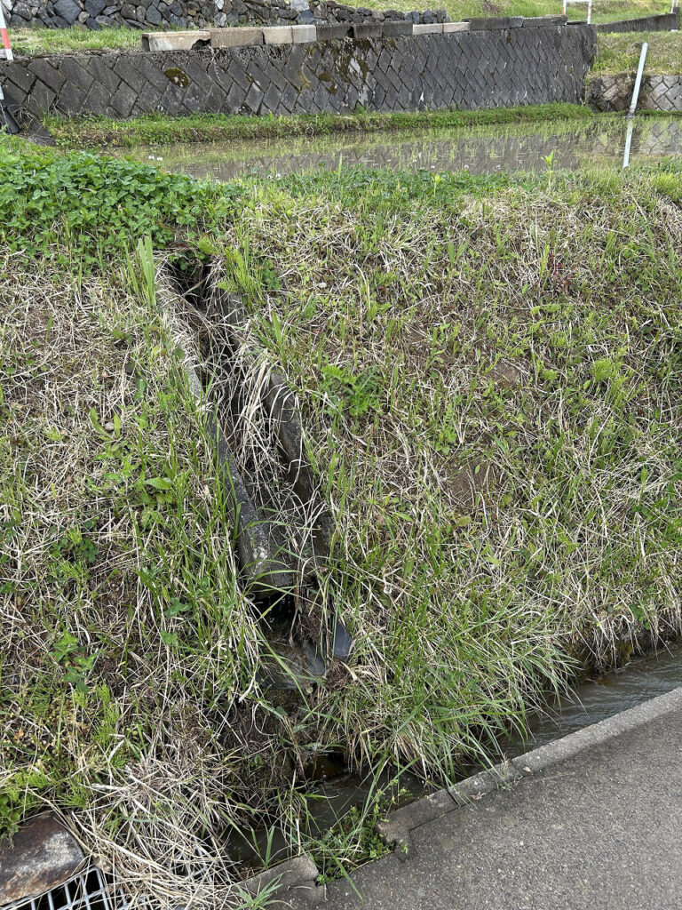 段差のある所では、上の田から下の田へ順次水を入れる「田越し(たごし)」給水となっている田が殆どです。