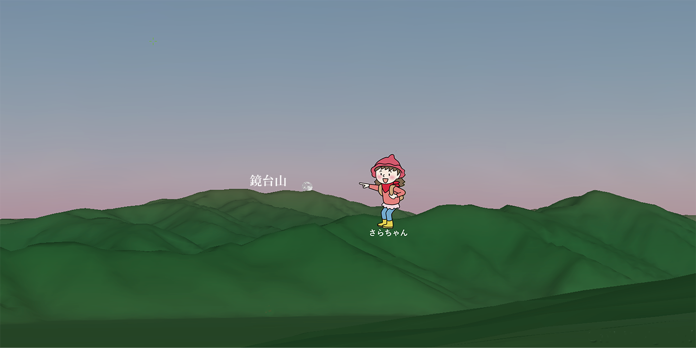 姪石苑での観月の前には、千曲市日本遺産センターで天文アプリの「ステラナビゲーター12」の画面をパソコンからスクリーンに映し出し、どのように操作すれば、事前に中秋の名月の現れる山の峯と時刻が分かるかを解説しました。このアプリを使うと、過去未來、世界のどこの場所でも中秋の名月の現われる様子を映し出すことができます。松尾芭蕉が「更科紀行」の旅で見た月の出、さらに北極で見られる中秋の名月もご覧いただきました。現代の「月の都」さらしな姨捨で最も有名な「鏡台山の凹んだ峯」から上がる中秋の名月は、どこでなら見られるのかについても、この天文アプリなどを使えば分かることをお伝えしました。(さらしなルネサンス・大谷善邦)