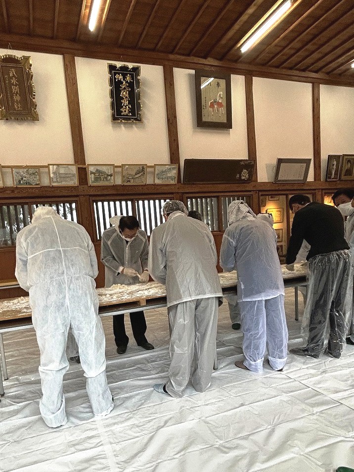毎年12月3日に、武水別神社では10日から始まる大頭祭での「御供餅」が準備されます。